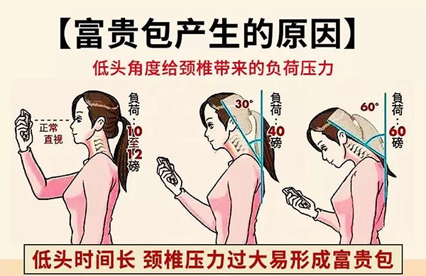 通常,长期低头看手机或向前探颈看电脑的人,容易诱发“富贵包”。