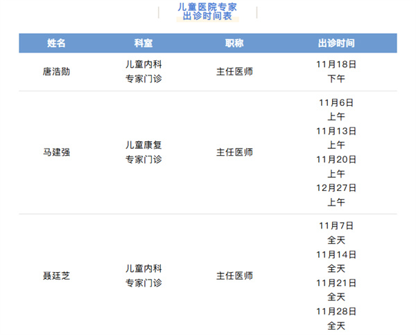 【名医有约】北京各市属医院专家在我院出诊,请大家收藏11月出诊信息