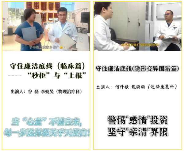系列视频通过医院内部平台发布后,迅速引发了广泛关注和积极评价。市卫生健康委、市医院管理中心等督导检查组与医院党委均对此项创新举措给予了积极肯定,认为其形式活泼、内容扎实,是新时代加强医院廉政文化建设的有效探索。更令人鼓舞的是,活动在广大职工中引发了点赞与转发,反馈尤为积极:“这就是我们科可能遇到的情况,主任演得太真实了!”“以前觉得纪律远,现在觉得就在身边。” “视频里教的拒绝方法很管用,下次就知道怎么应对了。”“清楚了什么能做,什么不能做,底线更明确了。”许多临床老师在观看后深受触动,从“旁观者”转变为“参与者”,主动为后续创作建言献策,甚至踊跃报名参演,形成了“人人讲廉洁、事事守规矩”的浓厚氛围。