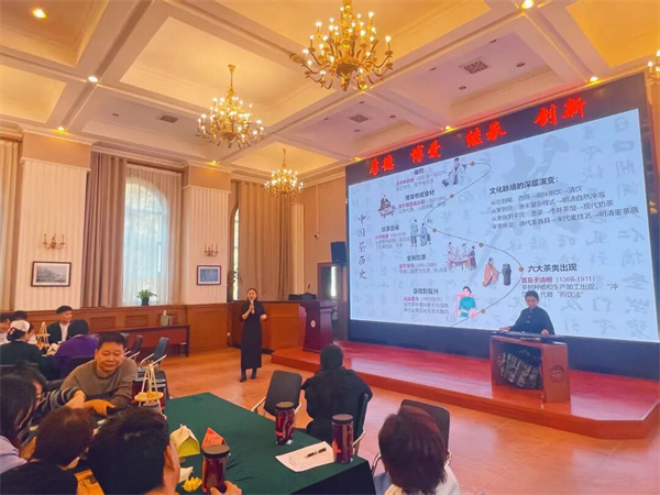 活动现场布置雅致温馨,各式茶具整齐陈列,氤氲茶香与酥点、果干等精致茶点的清甜气息交织弥漫,瞬间驱散了工作的疲惫。专业茶艺师檀竹云以“一片树叶的福寿寓意”开篇,带领大家走进中华茶文化的世界:从神农氏时期茶的药用起源,到唐宋明清以茶贺寿的传统风尚,再到六大茶类中适合生辰品鉴的温润品类......深入浅出的讲解让在场人员既领略了茶文化的历史脉络,更感受到“以茶为礼、以茶祈福”的美好寓意。