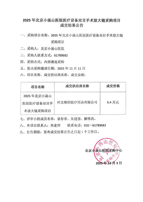 2025年北京小汤山医院医疗设备双目手术放大镜采购项目成交结果公告