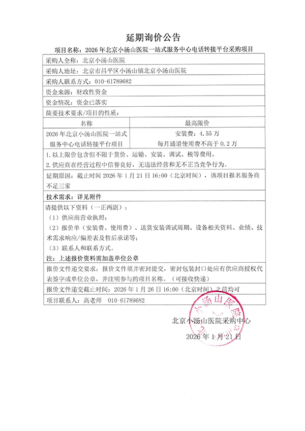 下一篇: 北京小汤山医院新增医用耗材遴选公告(2026年1月)