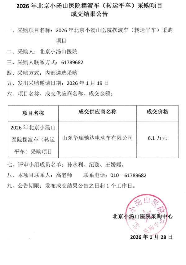 2026年北京小汤山医院摆渡车(转运平车)采购项目成交结果公告