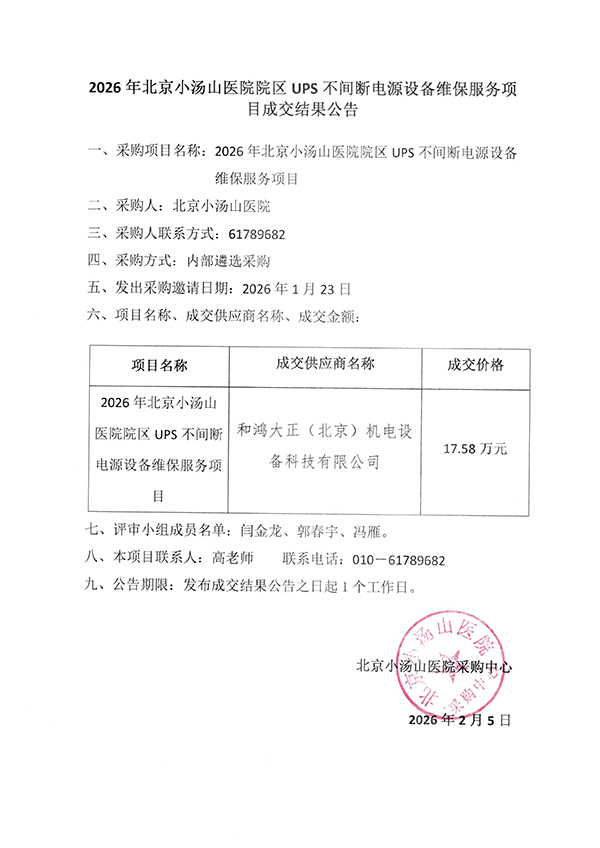 2026年北京小汤山医院院区UPS不间断电源设备维保服务项目成交结果公告
