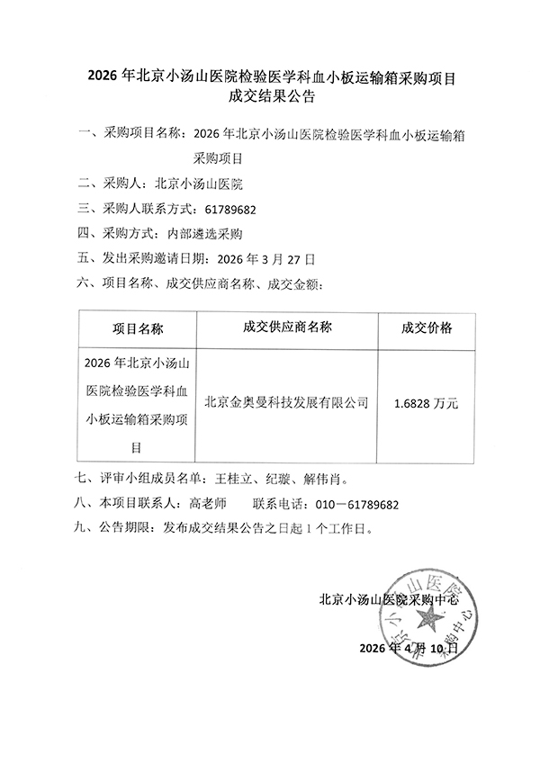 2026年北京小汤山医院检验医学科血小板运输箱采购项目成交结果公告