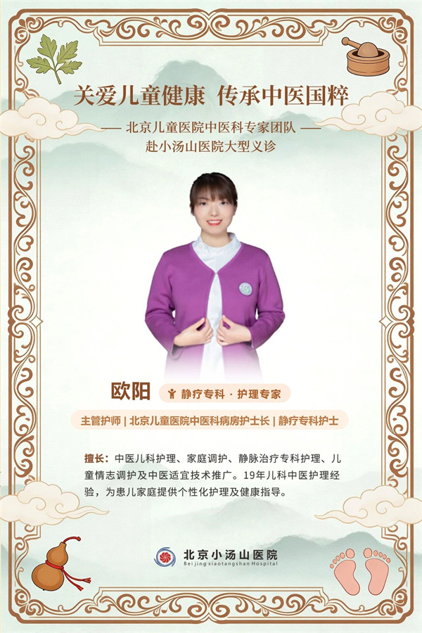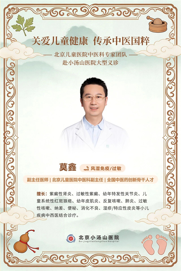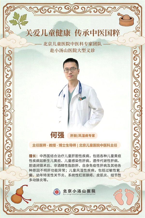 为切实服务广大儿童及家庭,推动优质中医医疗资源下沉,北京小汤山医院特邀首都医科大学附属北京儿童医院中医科顶级专家团队,于 2026年4月18日上午赴北京小汤山医院举办大型联合义诊活动。本次义诊汇聚了北京儿童医院中医科消化、呼吸、肝胆、风湿免疫等领域的领军专家,阵容强大。届时,由科室领军专家、骨干医师及资深护理专家组成的强大团队,将现场为孩子们提供涵盖多专业领域的权威诊疗咨询与中医特色护理指导,将国家级儿童专科医院的中医智慧送到您身边。